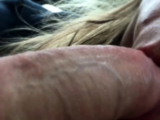 Blonde Ficke blaest Schwanz auf dem Rastplatz