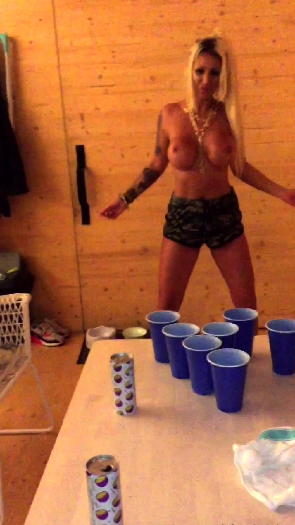 Amateur Blonde Chick Strips To Thong