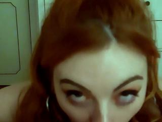 Freckled Redhead Babe on Her Knees to Sucks Big Cock