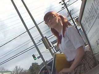 Redhead teen Rainia gives public blowjob