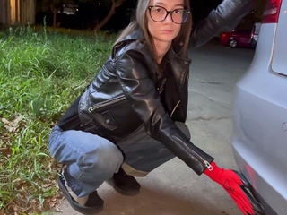 my sister masturbates on our leather couch