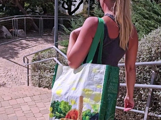 Neighbor walking in park and stairs without underwear -