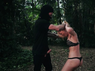 Blonde babe Raylin Ann is accosted outside and sucks and gets nailed