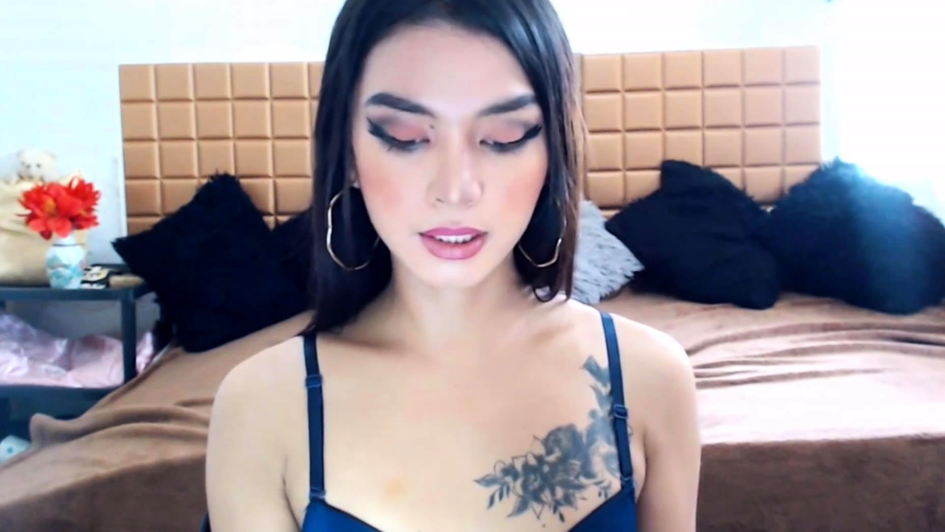 Sexy Shemale With Big Tits Jerking Her Huge Cock Off