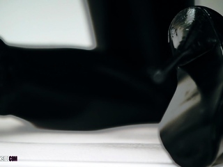 Latex slut solo anal masturbation