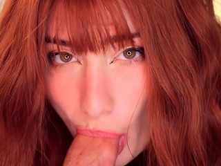 Sexy Redhead Blowjob and Cum in Hair, Long Hair, Hair