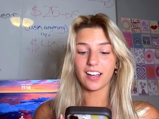 Handsome blonde Chelsea gets a dildo and bounces on it with a smile