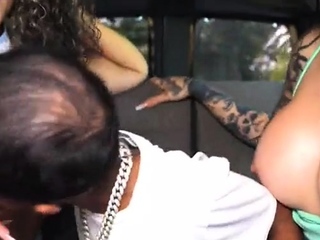 Black and ebony babes get a stiff dick
