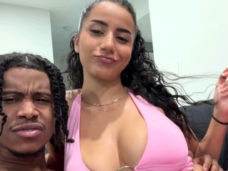 Curvy Andressa has her mouth getting a black stick ready for her holes