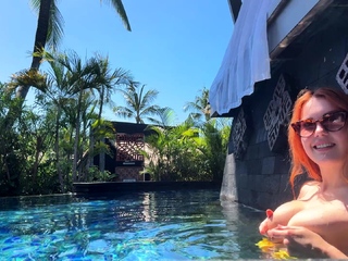 Sexy redhead playing in the pool with her tits