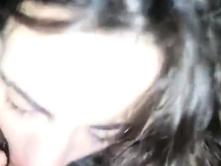 Brunette girl gives car blowjob and swallows cum