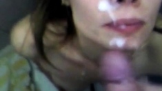 Snowbunny french girl sucks and cums hard before big facial