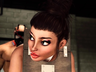 Sexy blonde gets fucked rough by a big monster in dungeon
