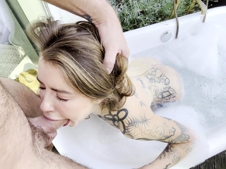 POV amateur video of redhead girl giving outdoor blowjob