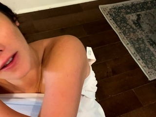 Fun adorable girl gives husband blowjob and recieves facial