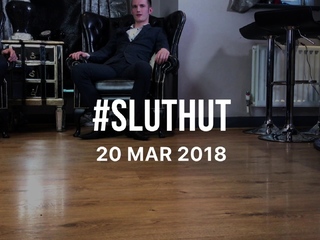 Busty brunette starts off sucking through a glory hole, then gets a gangbang