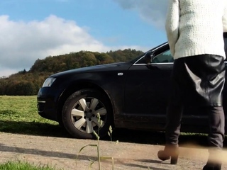 Old smoking Tranny masturbating outside
