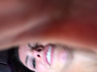 Beautiful brunette with a sublime ass and big tits chokes on a long rod