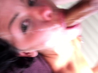 Sweet brunette teen with a cute smile reveals her great oral abilities