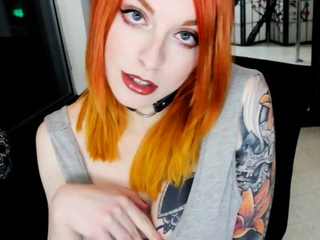 Sensuous redhead Felicia exposes her body and fucks a dildo on camera