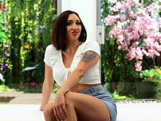 Chubby brunette babe with great curves fingers and rubs her pussy