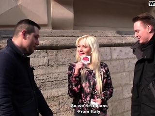 Stacked blonde invites two guys to her house to fulfill her fantasies