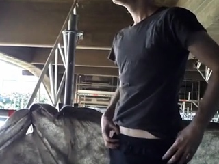 Horny young stud sticks a dildo up his ass and pleases his long dick