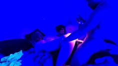 Lucky shy boy plays with two horny curvy latinas live at sex