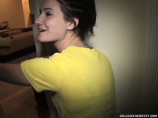 Lucky dude takes a hot coed up into his room to fuck her mouth