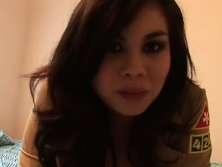Mia is on camera sitting seductively and blowing bubbles with her gum