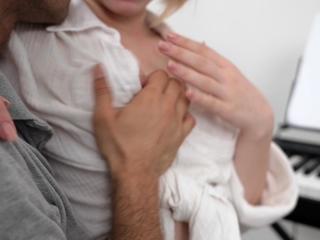 A stepson fucking his small tits blonde stepmom and stepaunt