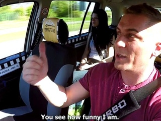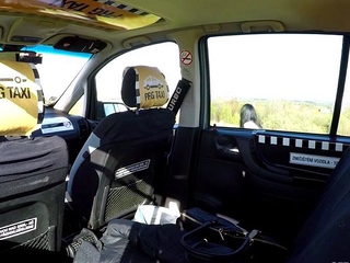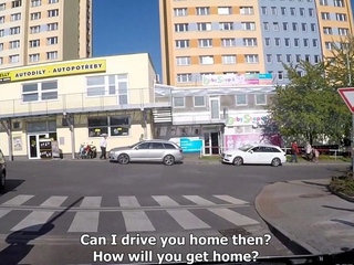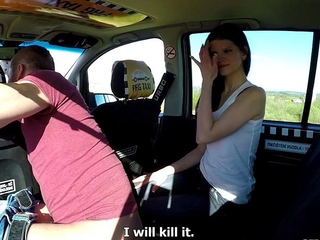 Sexy brunette with tiny tits and a sweet ass rides a big cock outside
