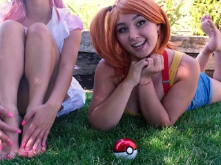 Lesbian teens tasting fresh pussies in the pool outdoor