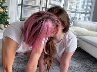 Redhead lesbian sucking then pussy licking horny girlfriend