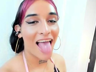 Sexy Shemale With Big Tits Jerking Her Huge Cock Off