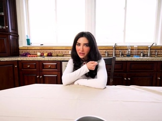 Buxom Latina with sexy long legs Sativa Rose has a stud spoon fucking her snatch