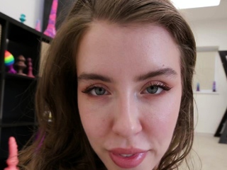 Small tit brunette gives a POV blowjob