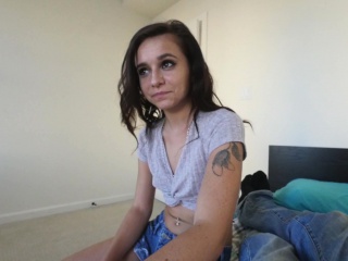Kinky brunette works her lips and her pussy on her stepbrother's cock