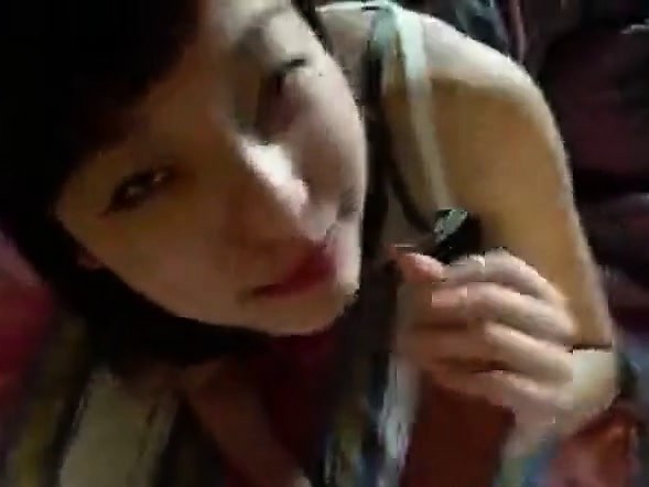 Sexy slender Asian babe with tiny boobs gets down on her knees and sucks a big cock