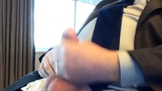 Suited Silver Fox Jerks Off Solo