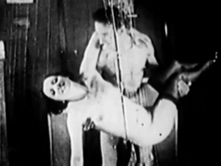 Sensual brunette dancer has a stud drilling her juicy peach on stage