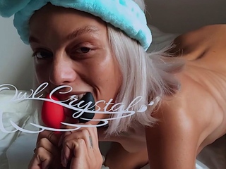 Blonde tight pussy babe solo toy fun in glamour masturbation