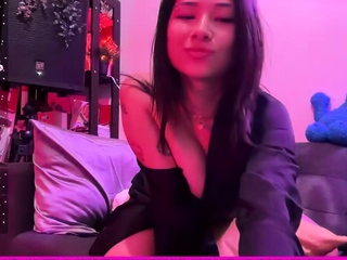 Horny amateur masked Asian teen toying on webcam show