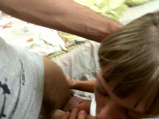 Eager blonde tart mounts a well-endowed guy's hard love muscle