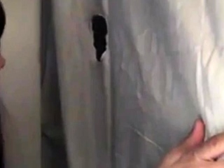 They meet up at a truck stop bathroom and do glory hole which turns into a threesome