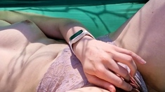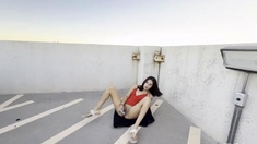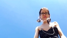 Outdoor BDSM Solo in Black Dress with Nipple Clamps and Butt