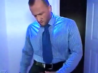 Blonde stud with a great body Brett strokes his long cock and cums on himself