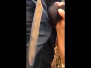 Feisty dudes head out to the forest for some sneaky cocksucking