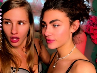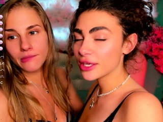 Blonde and brunette lesbian babes love