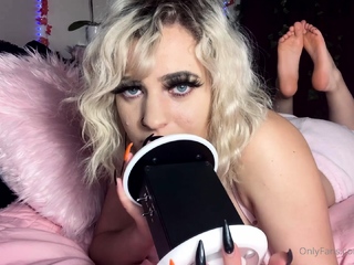 Hot amateur teen girl toying pussy in bed on webcam